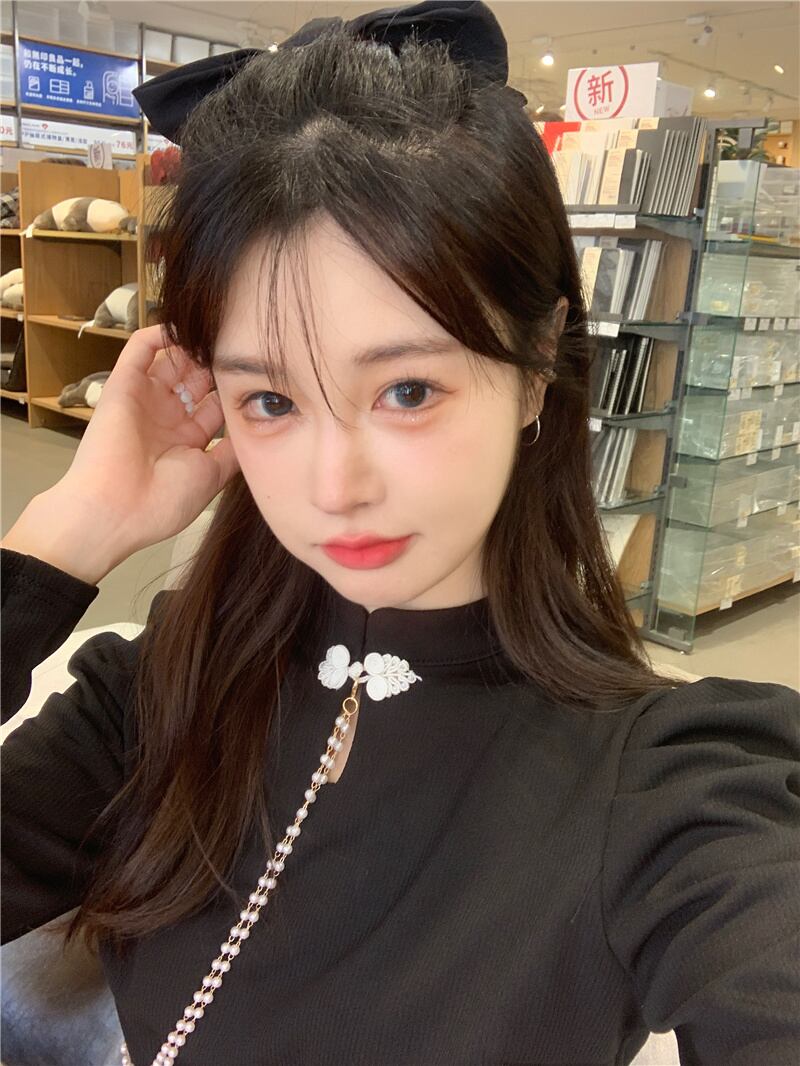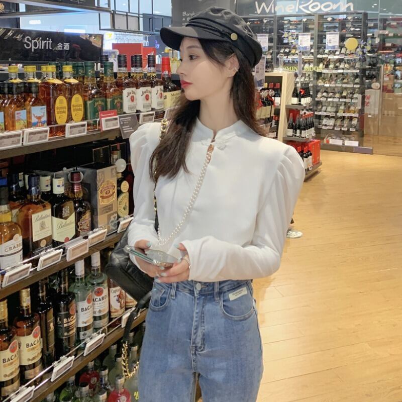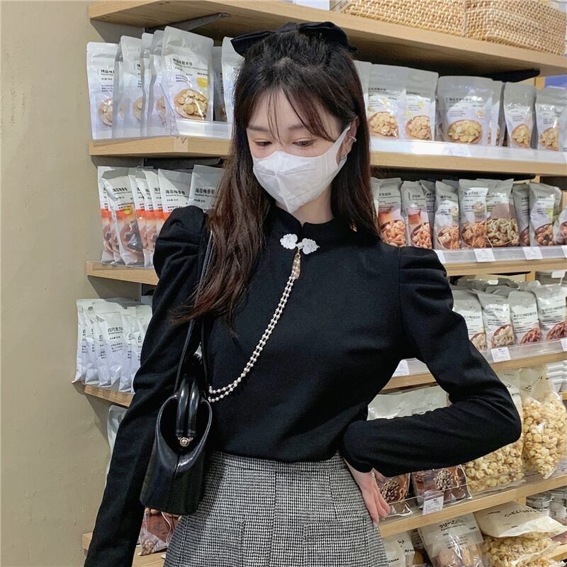 【送料無料】2色 トップス カットソー スタンドカラー リーフ パール シンプル 無地 きれいめ 大人可愛い キュート ラブリー 上品 長袖 ゆったり レディース ブラック ホワイト 黒 白 春 秋 冬 スプリング オータム ウインター セレブ カワイイ おしゃれ デート お出かけ 存在感 こなれ感 抜け感 女子会 普段使い デイリー使い 休日 主役級 インスタグラマー インスタ映え 韓国ファッション 海外トレンド 大人気 高見え トレンド 10代 20代 30代 40代 プチプラ db2433