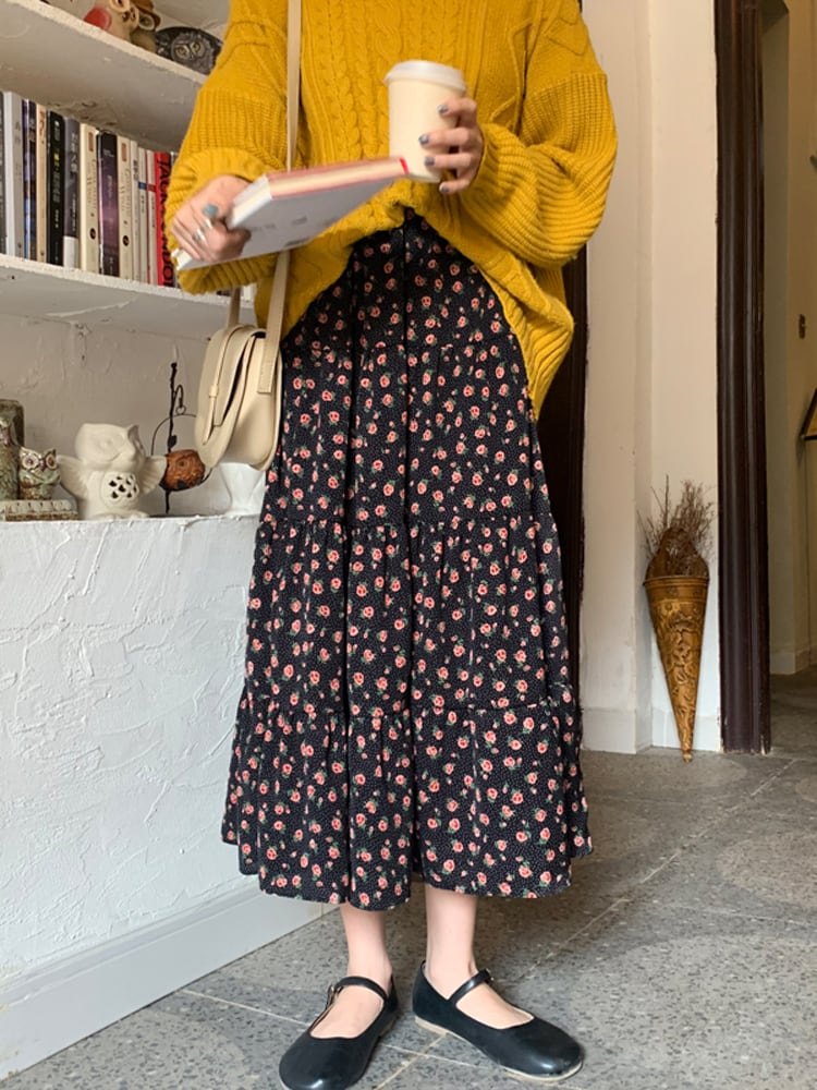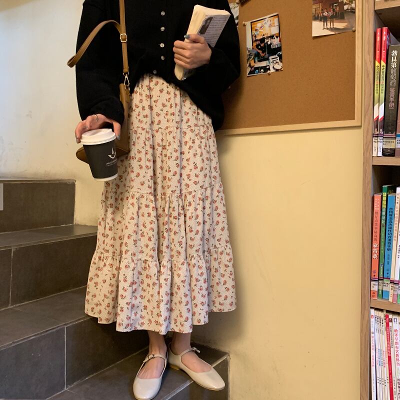 【送料無料】2色 ロングスカート 花柄 Aライン フレア ガーリー ドレープ 春 夏 スカート ミモレ丈 ボトムス レディース ホワイト ブラック 白 黒 可愛い ラブリー ドット柄 小花柄 薔薇 オシャレ ハイウエスト ウエストゴム ゆったり 楽ちん 脚長 大人カワイイ デート 女子会 普段 デイリー お出かけ 存在感 主役級 こなれ感 インスタ映え 韓国 オルチャン ファッション フラワー バラ柄 ふんわり スカート 着回し 定番 フレンチレトロ 人気 10代 20代 30代 プチプラ db2445