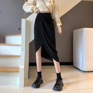 【送料無料】 膝丈 スカート レディース ヘムスカート ミドル丈 黒 白 茶 無地 かっこいい アシンメトリー 個性的 Iライン ペンシル ボトムス クール マニッシュ 春 夏 秋 ブラック オフホワイト ブラウン ハイウエスト 大人可愛い おしゃれ カジュアル セクシー タイト 脚長 スタイル S M L こなれ感 インスタ映え 10代 20代 30代 通勤 学生 OL 休日 デート 韓国 ファッション コーデ 公園 人気 お散歩 清楚 ママ トレンド 存在感 主役級 いい女 左右非対称 db2458