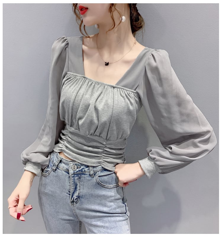 【送料無料】3色 ブラウス シャツ 透け感 パフスリーブ シンプル スクエアネック 大人可愛い キュート ラブリー 上品 長袖 トップス レディース グレー ホワイト ブラック 灰色 白 黒 春 夏 スプリング サマー 大きいサイズ XL セレブ カワイイ おしゃれ デート お出かけ 存在感 こなれ感 抜け感 女子会 普段使い デイリー使い 休日 主役級 インスタグラマー インスタ映え 韓国ファッション 海外トレンド 大人気 高見え トレンド 10代 20代 30代 40代 プチプラ db2504