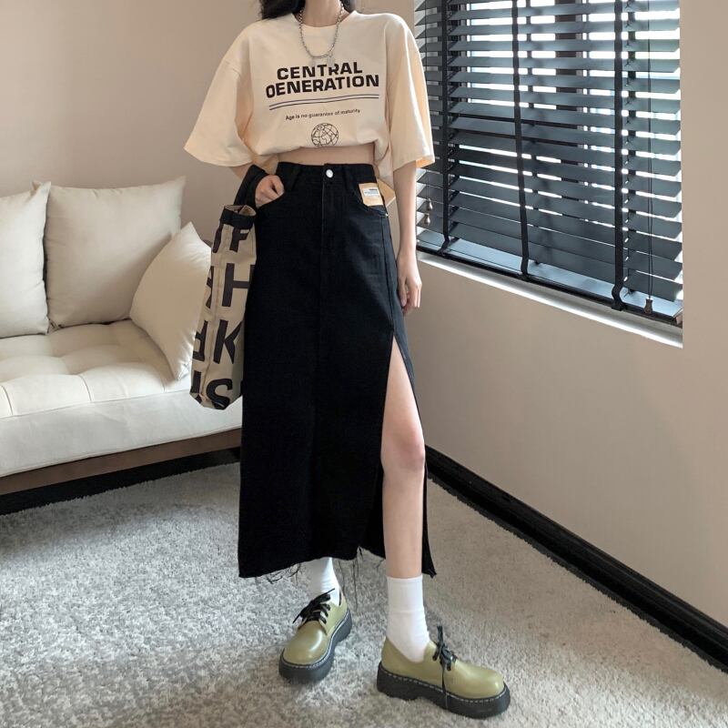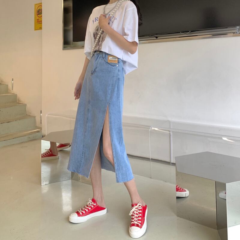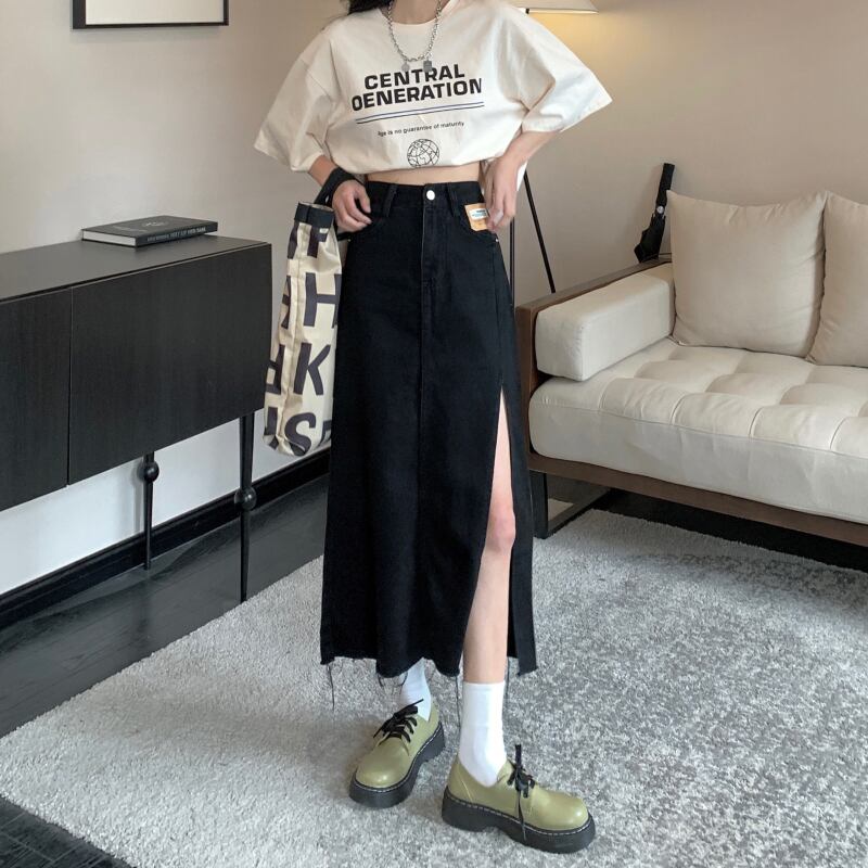 【送料無料】デニム スカート ボトムス レディース ロング丈 ミディアム丈 スリット かわいい 大人可愛い セクシー ボトムス シンプル カジュアル おしゃれ お洒落 かっこいい レトロ 大人可愛い 大人女子 こなれ感 ラフ スポーティー クール 無地 S M L XL 黒 ブラック ライトブルー 春 10代 20代 学生 通学 デート お出かけ 女子会 休日 旅行 着回し 普段使い 韓国 韓国系 オルチャン モテ 美脚 脚長 新作 プチプラ トレンド インスタ映え db2671