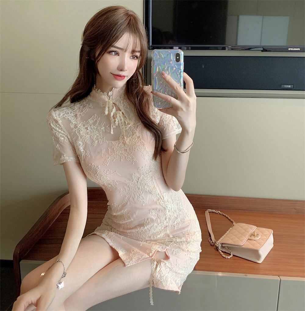 【送料無料】キャバドレス ボディコン ワンピドレス レディース ミニ タイト ピンク チャイナ ショート丈 膝上 半袖 スタンドカラー スリム 細身 レース 刺繍 ハイウエスト 大人可愛い きれいめ 大人 お洒落 大人女子 こなれ感 高見え キャバクラ セクシー 主役級 存在感 セレブ エレガント S M L アプリコット 花柄 夏 10代 20代 30代 デート お出かけ パーティー 韓国 韓国系 オルチャン モテ 美脚 脚長 プチプラ トレンド 流行 インスタ映え db2675
