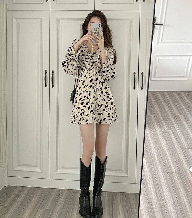 柔らかな印象の花柄の大人可愛いミニドレス♪