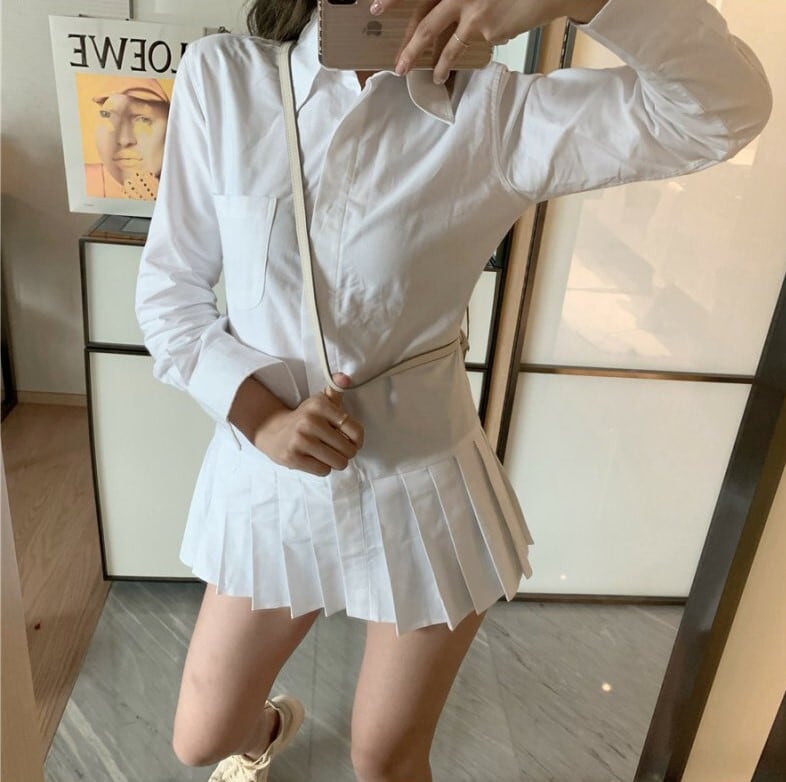真っ白なプリーツが大人可愛いシャツワンピ♪