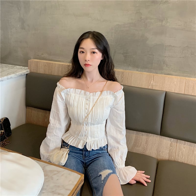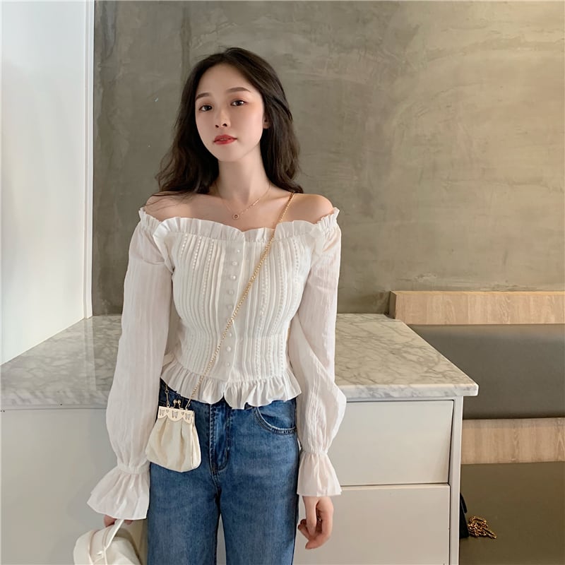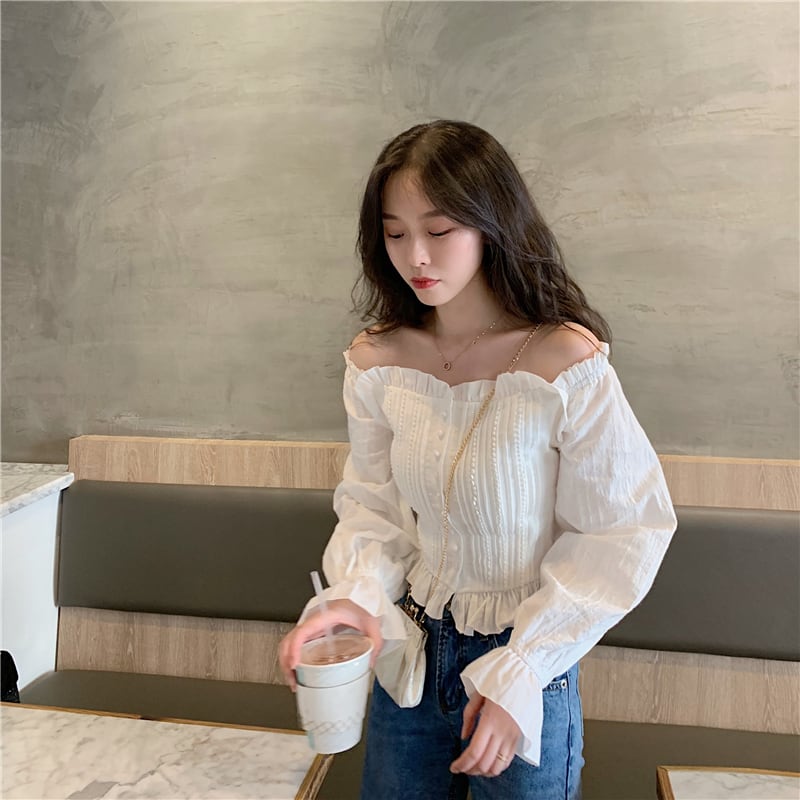 【送料無料】トップス シャツ ブラウス オフショルダー オフショル シンプル ラフ ゆったり ラブリー ガーリー いい女 モテる モテコーデ あざと可愛い 大人可愛い きれいめ 上品 長袖 レディース ホワイト 白 春 夏 スプリング サマー セレブ カワイイ おしゃれ デート お出かけ 存在感 こなれ感 抜け感 女子会 普段使い デイリー使い 休日 主役級 インスタグラマー インスタ映え 韓国ファッション 海外トレンド 大人気 高見え トレンド 10代 20代 30代 40代 プチプラ db2516