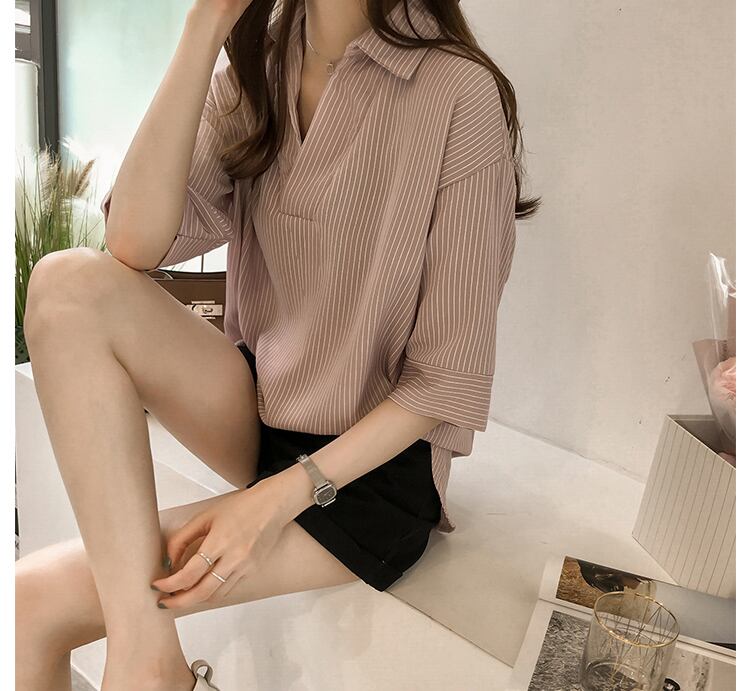 【送料無料】3色 シャツ ブラウス ストライプ シンプル ラフ ゆったり カッコイイ モテコーデ あざと可愛い 大人可愛い きれいめ 上品 七分袖 通勤 トップス レディース 大きいサイズ XL 2XL 3XL 4XL ホワイト ピンク ネイビー 白 紺 春 夏 スプリング サマー おしゃれ デート お出かけ 存在感 こなれ感 抜け感 普段使い デイリー使い 主役級 インスタ映え 韓国ファッション 海外トレンド 大人気 高見え トレンド 10代 20代 30代 40代 プチプラ db2518