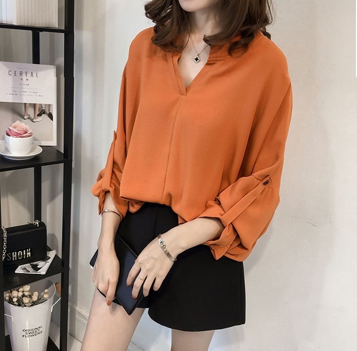 【送料無料】3色 シャツ ブラウス シンプル 無地 ラフ シャツイン風 カッコイイ クール系 ビジネス 長袖 トップス 春 夏 レディース 襟付き スタンドカラー 大人可愛い きれいめ 上品 長袖 レディース 大きいサイズ XL 2XL 3XL 4XL ベージュ オレンジ レッド 赤 春 夏 カワイイ おしゃれ こなれ感 抜け感 女子会 普段 デイリー 休日 主役級 インスタグラマー インスタ映え 韓国ファッション 海外 大人気 高見え トレンド 10代 20代 30代 40代 プチプラ db2521