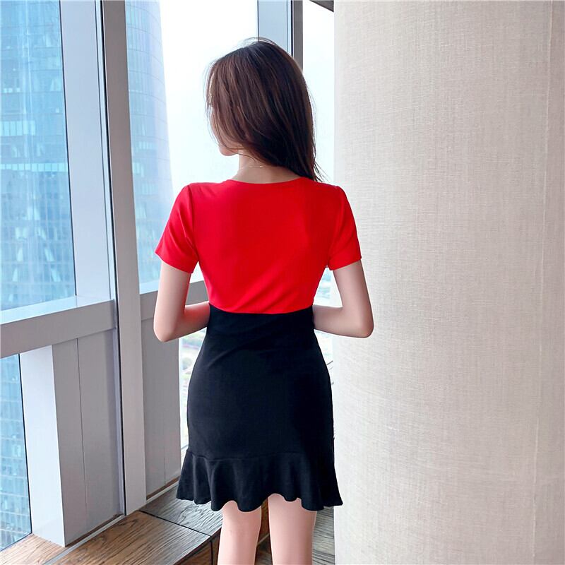 【送料無料】3色 キャバドレス ボディコン ワンピース 切り替えデザイン タイト ミニ ドレス レディース バイカラー シンプル 無地 Vネック 谷間見せ 谷間 キャバクラ クラブ ニュークラ ナイトクラブ お呼ばれ セクシー 半袖 ウエストマーク S M L 韓国風 オルちゃん オールシーズン 可愛い きれいめ 大人可愛い プチプラ 安い キュート エレガント 着痩せ 脚長効果 ファッション モテ トレンド 人気 ホワイト レッド ブラック インスタ映え イベント 主役 db2685