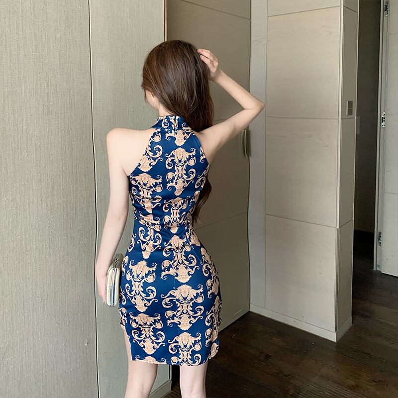 【送料無料】キャバドレス ボディコン ワンピドレス レディース ホルターネック チャイナドレス カットアウト アジアン エスニック ミニ ミニ丈 ショート ショート丈 膝上 スタンドカラー スリム 細身 かわいい 大人可愛い きれいめ 大人 お洒落 レトロ 大人女子 こなれ感 高見え セクシー エレガント 主役級 S M L 白 ホワイト 青 ブルー 夏 10代 20代 30代 デート お出かけ パーティー 韓国 韓国系 オルチャン モテ 美脚 脚長 プチプラ トレンド 流行 インスタ映え db2704
