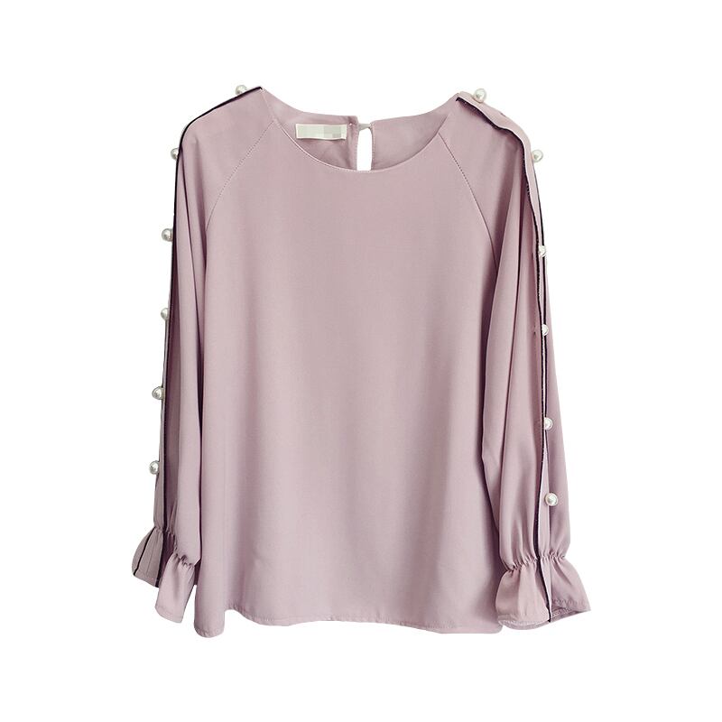【送料無料】2色 シャツ ブラウス パール 可愛い 個性的 おしゃれ 長袖 フリル 春夏 トップス カットソー レディース ラウンドネック 無地 大人可愛い きれいめ 上品 長袖 大きいサイズ XL 2XL 3XL 4XL ピンク ホワイト 白 セレブ カワイイ おしゃれ デート お出かけ 存在感 こなれ感 ビジネス 通勤 フォーマル 主役級 インスタグラマー インスタ映え 韓国ファッション 海外トレンド 大人気 高見え トレンド 10代 20代 30代 40代 プチプラ db2523