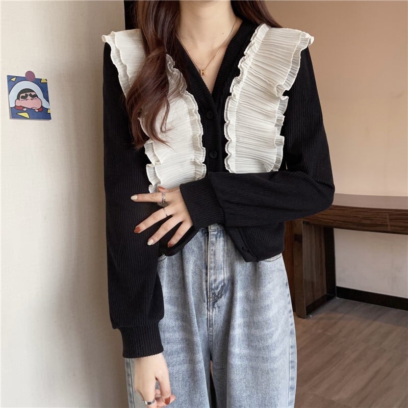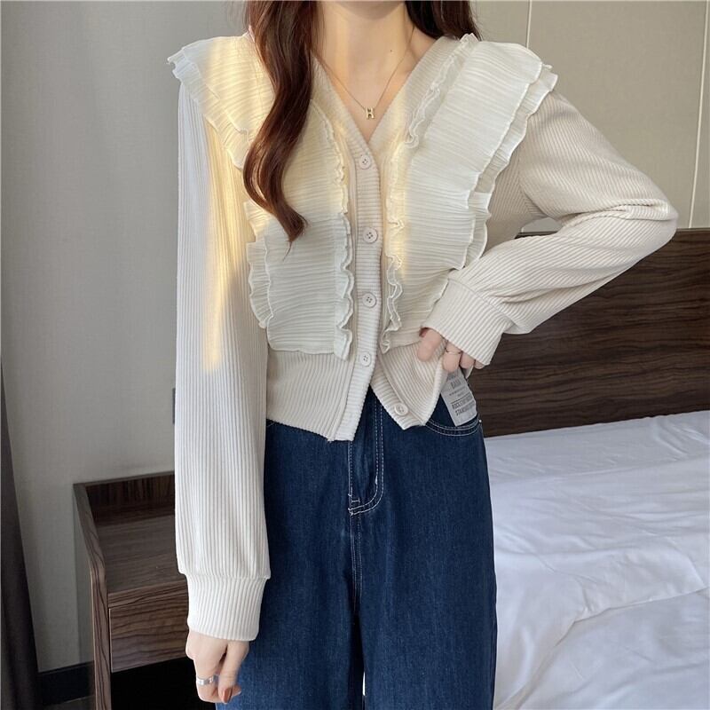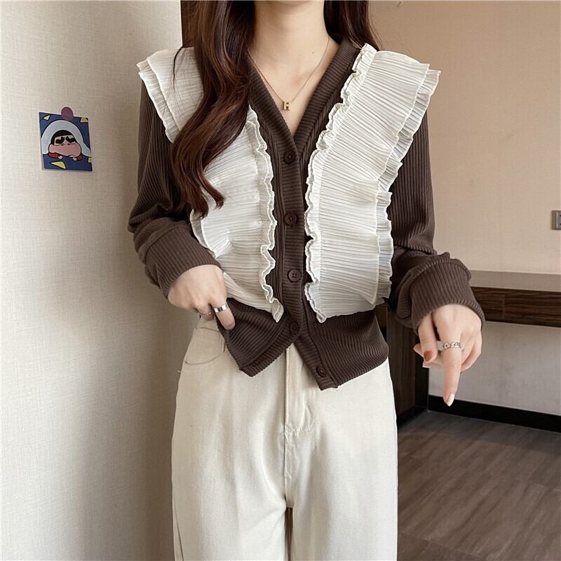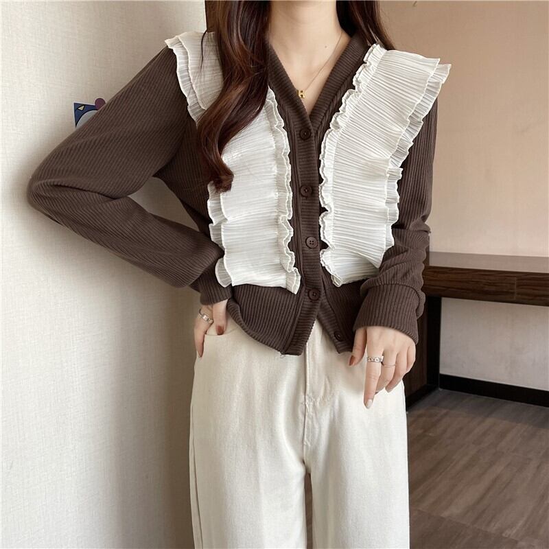 【送料無料】 ニット トップス レディース Vネック カーデガン ボタン カットソー おしゃれ かわいい 大人可愛い 長袖 フリル 個性的 レトロ 黒 白 茶 ブラック オフホワイト ブラウン 大人かわいい こなれ感 インスタ映え アイテム 韓国 ファッション お洒落 カジュアル コーデ デート 通学 学生 OL 通勤 主役級 10代 20代 30代 春 秋 冬 トレンド 抜け感 オシャレ 存在感 ガーリー オシャレ 個性的 大人カジュアル db2497