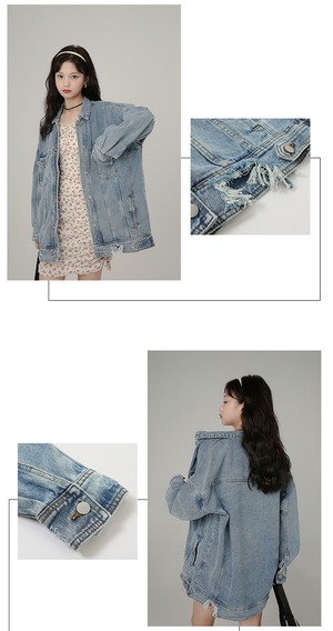 【送料無料】デニム ジャケット ジージャン レディース 長袖 淡色 水色 ダメージ 穴あき 春 秋 かっこいい 個性的 アウター 上着 ポケット ボタン シングルブレスト 長袖 ブルー 青 デニム S M L シンプル カジュアル ストリート系 かわいい おしゃれ こなれ感 お洒落 大人女子 大人カジュアル 10代 20代 30代 40代 普段使い 普段着 デイリー 休日 お出かけ デート 女子会 旅行 着回し インスタ映え モテコーデ トレンド 韓国系 ファッション コーデ 韓国 db2360
