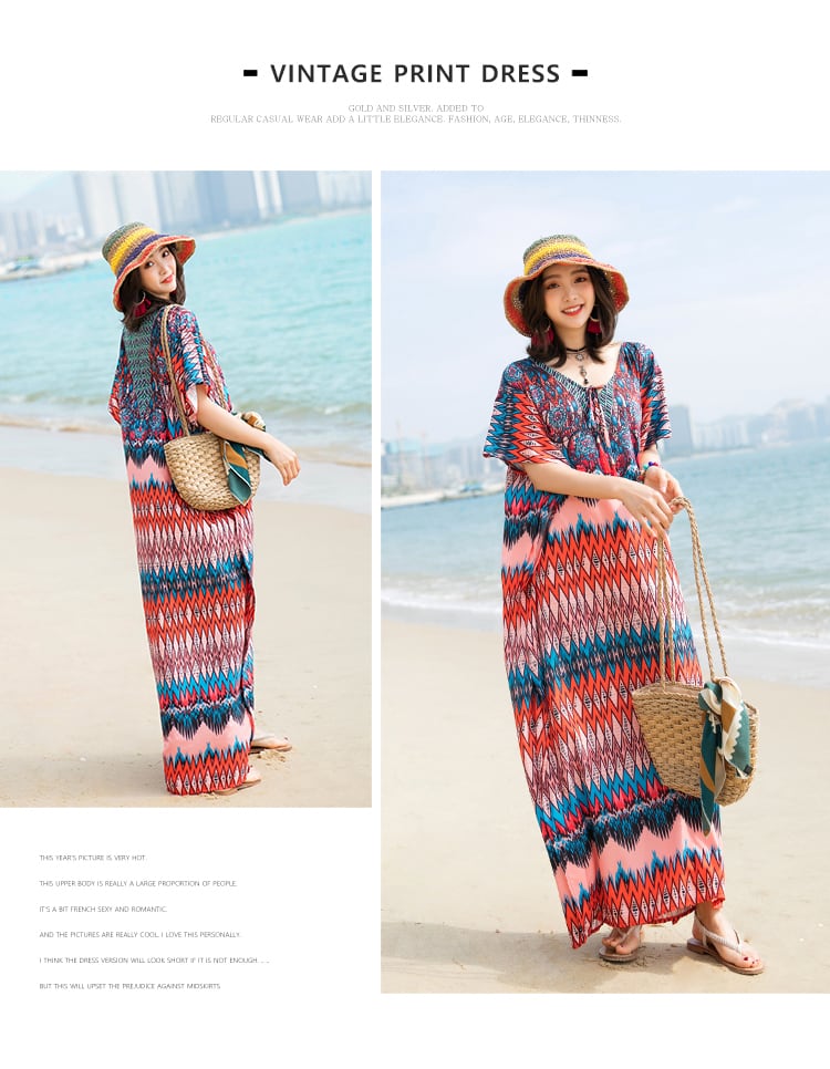 【送料無料】5色 夏 ワンピース ゆったり ラフ ロング 柄 リゾート ワンピ ドレス エスニック ボヘミアン 海 ビーチ プール バカンス 派手 レディース ワンサイズ おしゃれ ロング丈 半袖 Vネック オレンジ レッド ブルー グリーン 赤 青 緑 きれいめ かっこいい セクシー キュート かわいい いい女 細身 衣装 大人 可愛い 脚長 華やか ゴージャス インスタ映え サマードレス 派手 目立つ 他にはない アジアン 海外 大人気 高見え 10代 20代 30代 韓国系 安い db2547