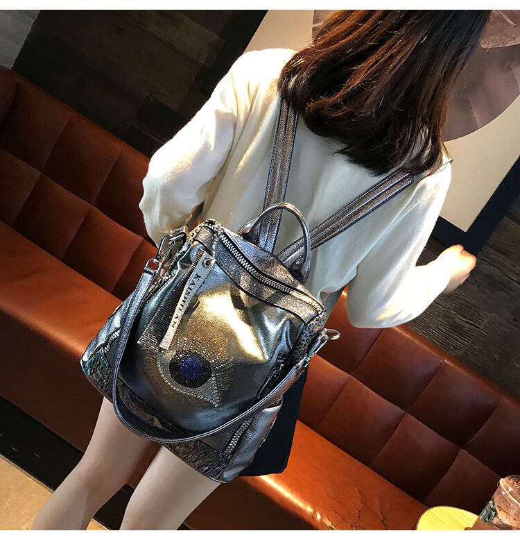 【送料無料】2色 ショルダーバッグ バックパック リュックサック 手持ち レディース 黒 シルバー 個性的 キラキラ 大容量 縦型 A4 存在感 ユニーク メンズ お洒落 カジュアル ストリート かわいい おしゃれ 存在感 個性的 派手 PU レザー 革 手提げ 斜めがけ バック カバン 鞄 高見え 3way キラキラ 10代 20代 学生 お出かけ 買い物 デート 女子会 旅行 レジャー 人気アイテム 海外 韓国 トレンド 海外トレンド インスタ映え 韓国系 ファッション db2383