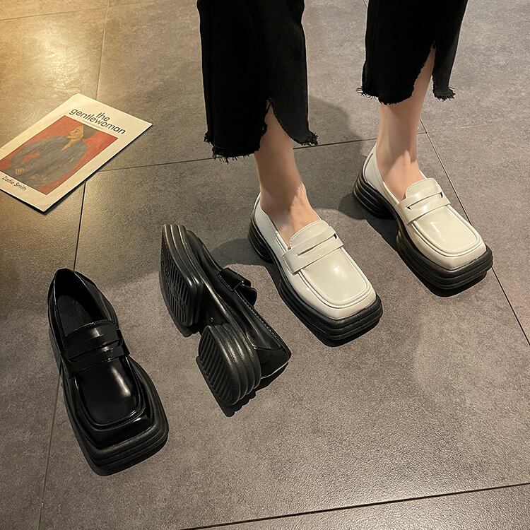 【送料無料】ローファー レディース くつ 厚底 かっこいい スクエアトゥ PU レザー 革 靴 ミドルヒール 4cm 太めヒール 大人可愛い 黒 白 おしゃれ レトロ ラブリー キュート ガーリー 主役級 歩きやすい 22.5cm 23.0cm 23.5cm 24.0cm 24.5cm 25.0cm ブラック ホワイト 無地 春 夏 秋 冬 10代 20代 学生 通学 デート お出かけ 女子会 休日 デイリー 普段使い お揃い 双子 韓国系 高見え プチプラ トレンド 流行 インスタ映え db2724