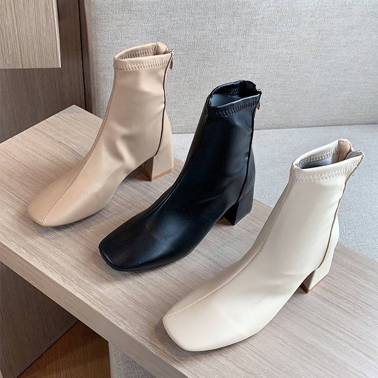 【送料無料】ショートブーツ ブーティ レディース 6cmヒール 太ヒール スクエアトゥ PU レザー 革 靴 かわいい 大人可愛い きれいめ シンプル カジュアル 黒 白 ベージュ チャンキーヒール パンプス おしゃれ お洒落 かっこいい クール 無地 春 秋 冬 10代 20代 30代 オフィス OL 通勤 学生 通学 デート お出かけ 女子会 休日 旅行 レストラン デイリー 普段使い 韓国 高見え モテ プチプラ トレンド 白 ホワイト 黒 ブラック ベージュ 女の子 イベント 人気 db2725