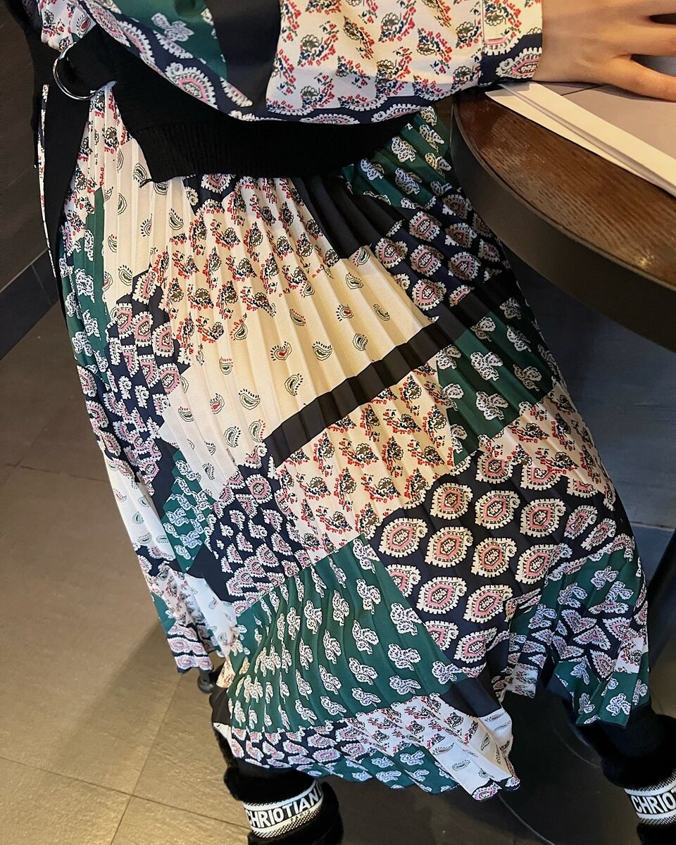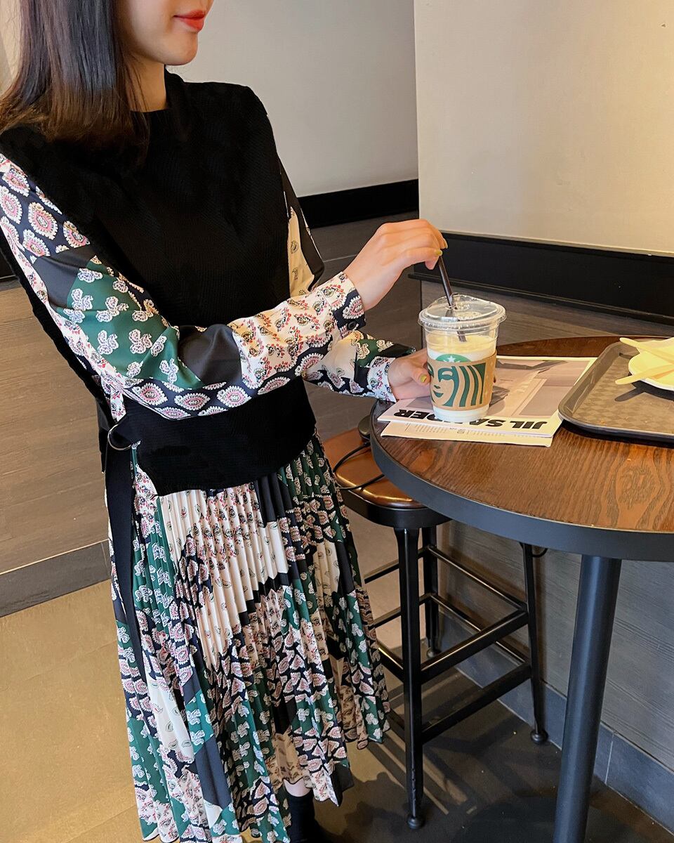 【送料無料】 ワンピース プリーツ シフォン ワンピ ペイズリー柄 ロング丈 長袖 黒 レディース 2点セット ニット ベスト かっこいい おしゃれ 大人 ワンピ ドレス カジュアル ラウンドネック M L XL 2XL 3XL 大きいサイズ ゆったり 大人可愛い きれいめ カジュアル 大人 上品 おしゃれ レトロ エキゾチック 個性的 エレガント 主役級 存在感 春 秋 冬 20代 30代 ママ OL デート お出かけ 着回し 普段使い 重ね着 モテ 体系カバー トレンド db2758