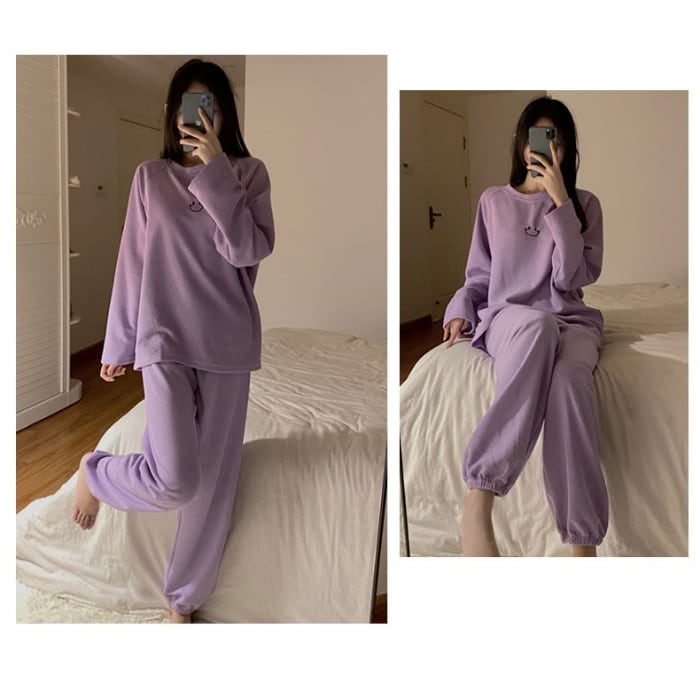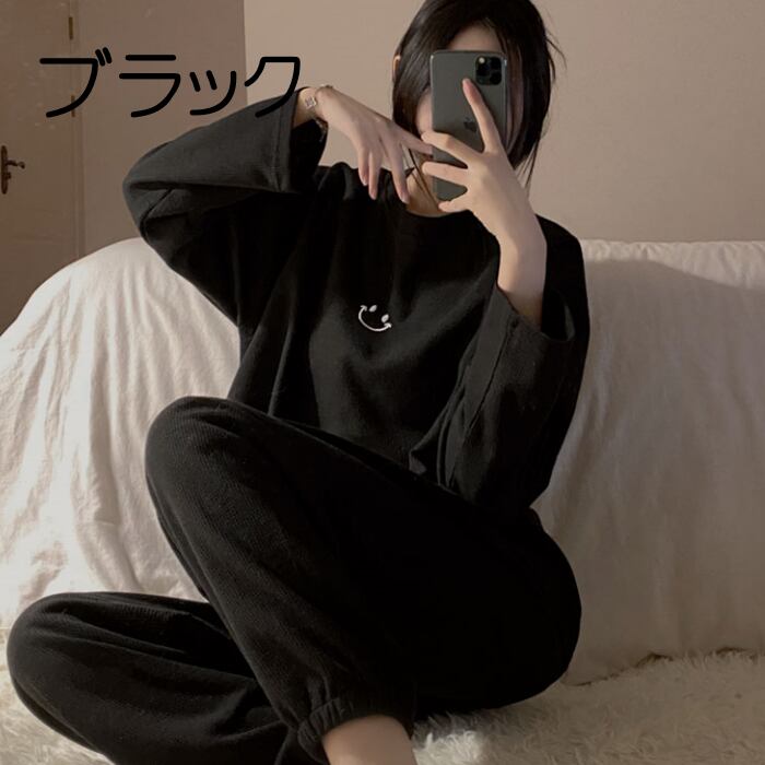 【送料無料】6色 ルームウェア レディース 部屋着 ナイトウエア パジャマ 寝間着 ツーピース 上下セット 長袖 無地 ワンポイント スマイル ピンク 黒 白 緑 紫 グレー ブラック オフホワイト グリーン ライトパープル おしゃれ かわいい 大きいサイズ M L XL 可愛い 個性的 インスタ映え ファッション カジュアル コーデ デート お泊り 女子会 お揃い 双子 旅行 主役級 10代 20代 春 秋 冬 トレンド 抜け感 オシャレ ゆったり らくちん ルーズ ゆる キュート db2809