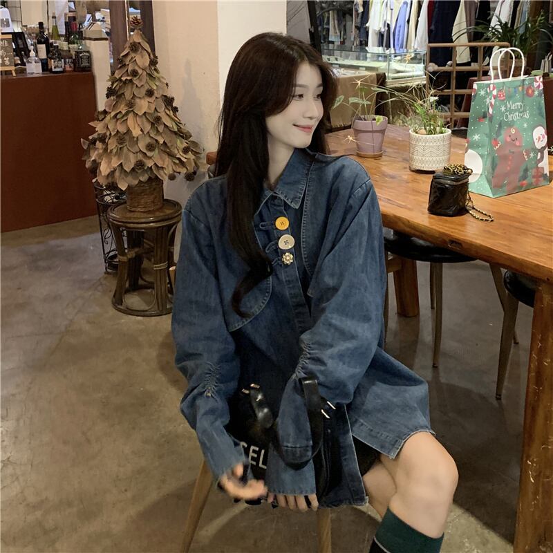 【送料無料】 デニム シャツ ブラウス 長袖 青 レディース 春 秋 トップス ブルーデニム ボタン 個性的 レトロ 可愛い ポロカラー カラフル ユニーク 韓国 ファッション 袖あり 襟あり カジュアル 10代 20代 レディース ママ OL 学生 フリーサイズ かわいい 大人可愛い きれいめ カジュアル 大人 おしゃれ レトロ こなれ感 ラブリー キュート ガーリー 個性的 主役級 存在感 着回し 普段使い 重ね着 モテ トレンド 流行 インスタ映え db2762