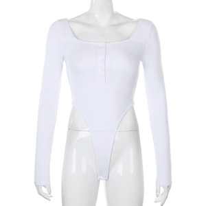 【送料無料】ボディスーツ レディース ハイレグ 白 無地 長袖 トップス カットソー 海外 セレブ トレンド 流行 ファッション 人気 コーデ ホワイト 春 夏 秋 カジュアル タイト 細身 かっこいい おしゃれ ラフ コーデ 薄手 ロンT Tシャツ スタイルアップ 個性的 ユニーク チラ見せ 肌見せ S M L 綿 コットン スクエアネック 前ボタン 10代 20代 30代 40代 着回し こなれ感 抜け感 大人 アイテム セクシー ピッタリ 美ライン 脚長 db2540