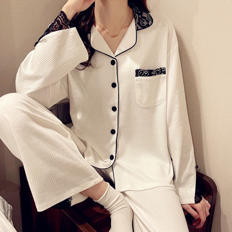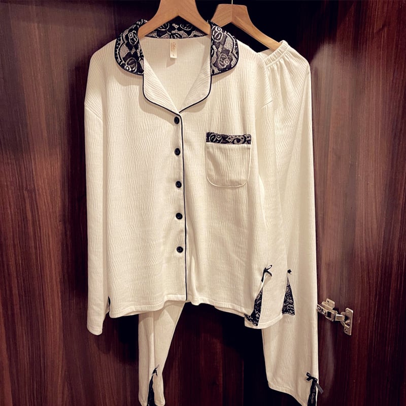 【送料無料】 パジャマ ルームウェア レディース 白 上下セット レース バイカラー かっこいい 長袖 シャツ風 部屋着 ナイトウエア 寝間着 ツーピース 無地 ボタン ホワイト 襟付き ポケット セクシー リボン おしゃれ かわいい 大きいサイズ M L XL 2XL 可愛い 個性的 インスタ映え ファッション カジュアル コーデ デート お泊り 女子会 お揃い 双子 旅行 主役級 10代 20代 30代 春 秋 冬 トレンド 抜け感 オシャレ ゆったり らくちん ルーズ ゆる キュート db2813