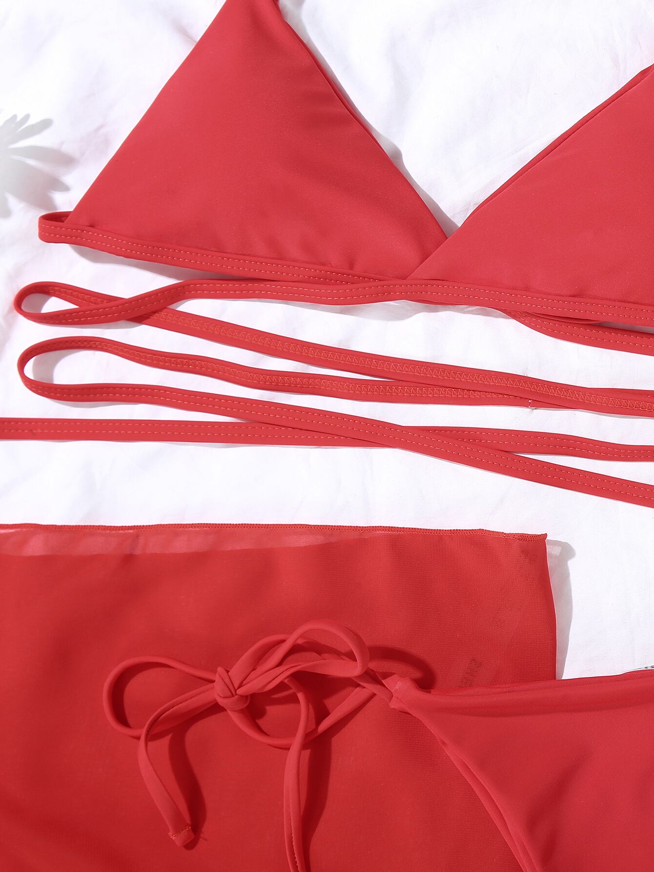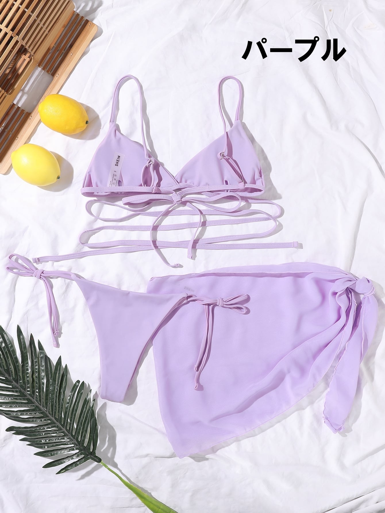 【送料無料】5色 ビキニ タンキニ レディース パレオ付き 3点セット 紐 セクシー 海外 水着 クロスデザイン 大人 シンプル 無地 黒 紫 赤 緑 パープル グリーン ブラック S M L 上下セット ブラジリアン トライアングル 三角 ビキニ sexy 女の子 脚カバー 太ももカバー リュクス ハイレグ カットアウト セクシー きれいめ 水着 10代 20代 30代 スウィムウェア ヘルシー 水着 スタイルアップ プール 海 夏 トレンド アイテム セレブ モデル クール db2559