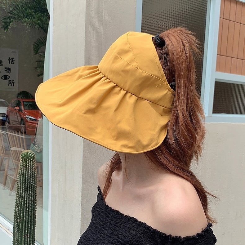ツバ広めで日よけ効果抜群のドレープが可愛いサンバイザー