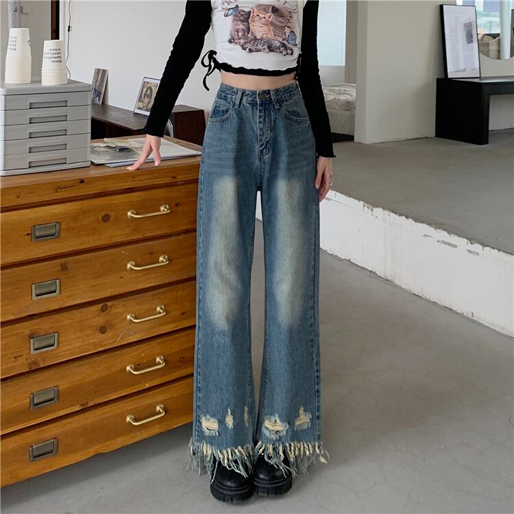 【送料無料】 デニムパンツ ジーパン ジーンズ カットオフデニム 切りっぱなし ワイド フリンジ ヘム 青 ブルーデニム ズボン レディース ボトムス かっこいい ハイウエスト レトロ 韓国 ファッション ウエスタン風 ダメージ 穴あき 春 夏 秋 冬 10代 20代 30代 ママ OL 学生 デート お出かけ 公園デビュー 着回し 普段使い 美脚 脚長 スタイルアップ 新作 2022 トレンド プチプラ S M L 大人可愛い カジュアル お洒落 こなれ感 ボーイッシュ クール db2769