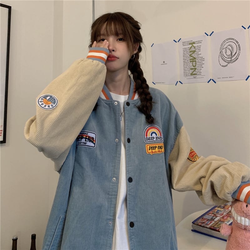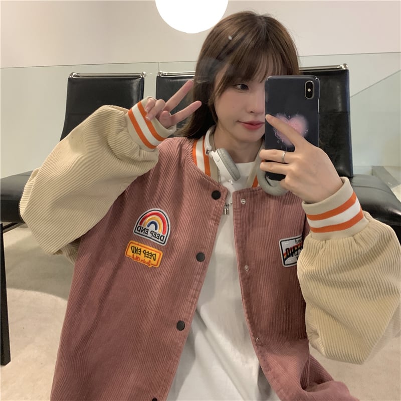 【送料無料】 2色 アウター ベースボールジャケット ブルゾン ジャンパー ピンク 青 ブルー コーデュロイ スポーツMIX バイカラー ワッペン M L XL 大きいサイズ レトロ かわいい ゆったり オーバーサイズ ドロップショルダー 春 秋 冬 10代 20代 30代 レディース ママ OL 学生 2022 大人可愛い シンプル カジュアル 大人 おしゃれ お洒落 かっこいい ラフ メンズライク ボーイッシュ スポーティー お出かけ アウトドア 着回し 普段 重ね着 ゆったり プチプラ db2770