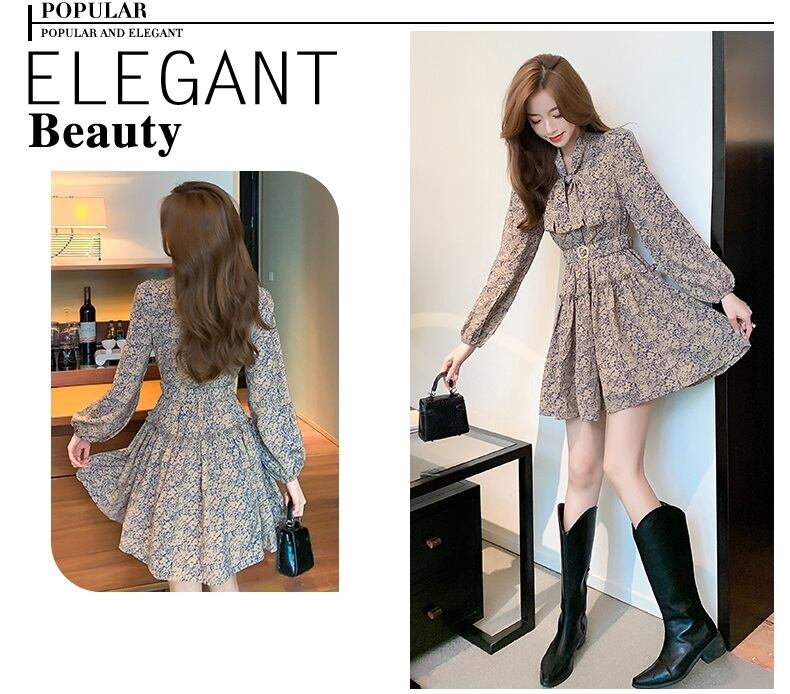 【送料無料】ワンピース ミニ ドレス 花柄 長袖 レトロ ガーリー フレア リボン ウエストマーク Aライン ショート丈 ワンピ フラワー レディース 小さいサイズ S 大きいサイズ XL 2XL おしゃれ 柄 長袖 Vネック 春 スプリング ブルー 青 きれいめ モテコーデ モテる デート キュート かわいい あざとい いい女 普段 大人 可愛い 主役級 脚長 華やか プリティ インスタ映え 海外 トレンド 流行 高見え 10代 20代 30代 着痩せ 韓国系 安い プチプラ 存在感 db2890
