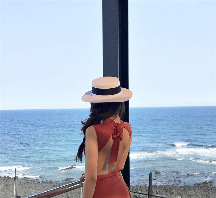 ハイネックとシンプルなバックリボンが大人っぽいモノキニ水着