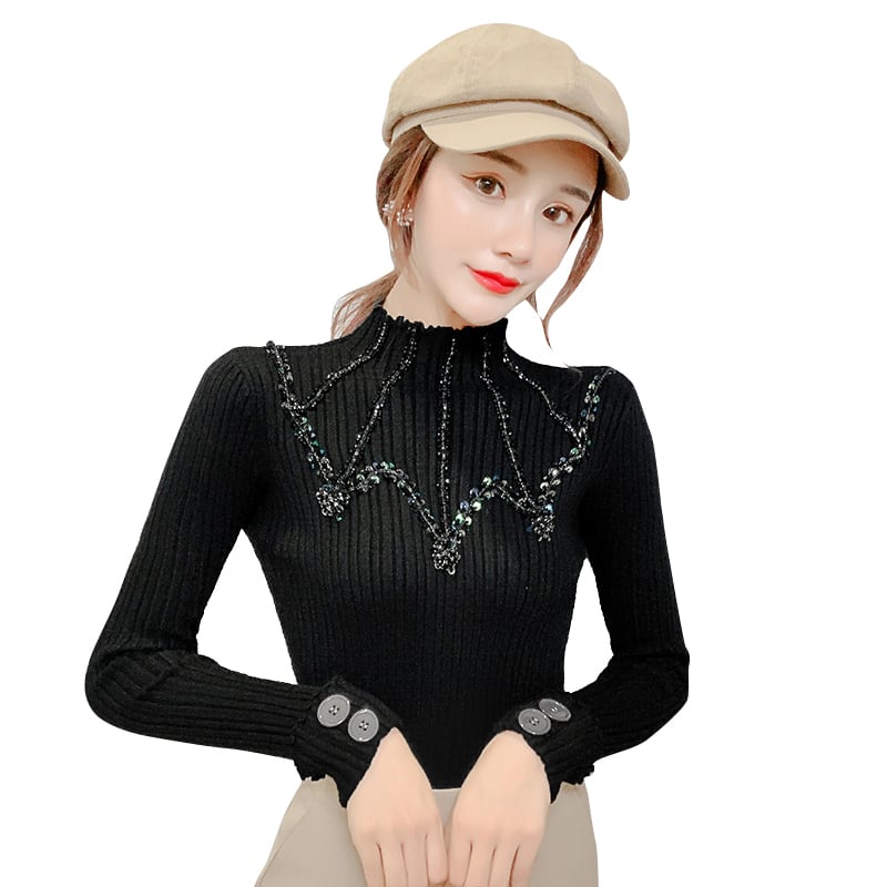 【送料無料】3色 トップス ニット セーター ビジュー スパンコール リブ タイト ハーフタートルネック モテる 大人可愛い 清楚 きれいめ 可愛い 着痩せ 上品 スタイリッシュ 長袖 レディース ワンサイズ ブラック ホワイト ピンク 黒 白 春 秋 冬 ラブリー ガーリー おしゃれ デート お出かけ 存在感 こなれ感 抜け感 女子会 普段使い 休日 主役級 インスタ映え 韓国ファッション 海外トレンド 大人気 高見え 流行 10代 20代 30代 40代 プチプラ db2897