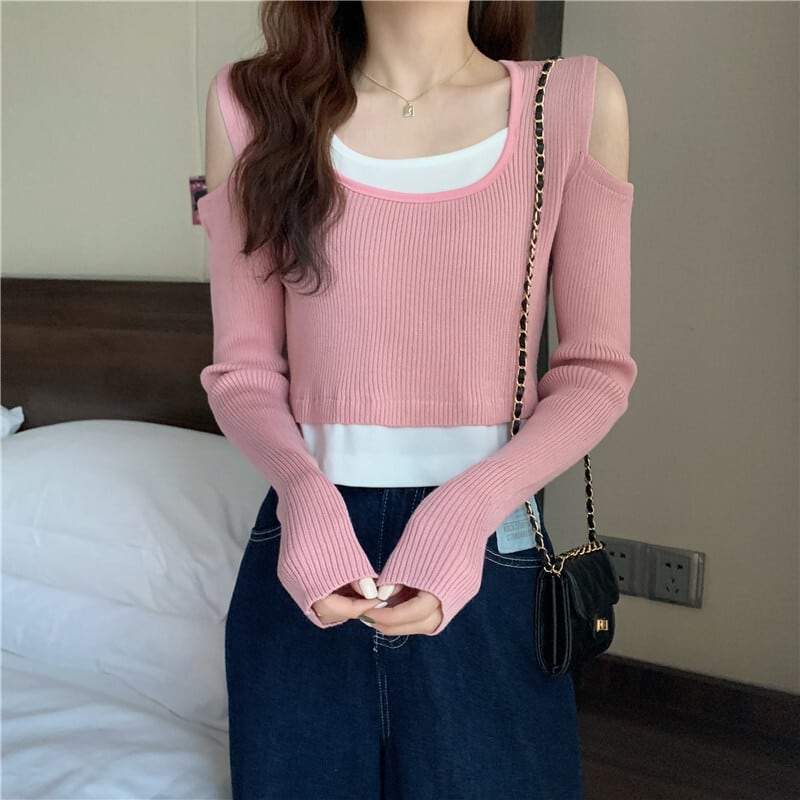 【送料無料】 3色 ニット トップス カットソー レディース プルオーバー 長袖 ショート丈 オフショルダー 肩出し ピンク グレー 黒 ブラック シンプル かわいい おしゃれ セクシー 大人女子 こなれ感 お洒落 大人可愛い ガーリー 個性的 存在感 クール 10代 20代 30代 通勤 学生 OL 休日 お出かけ デート 女子会 韓国 ファッション コーデ お揃い 双子 インスタ映え 人気 トレンド 抜け感 レトロ 主役級 オシャレ デザイン 可愛い ダンス イベント クラブ db2816