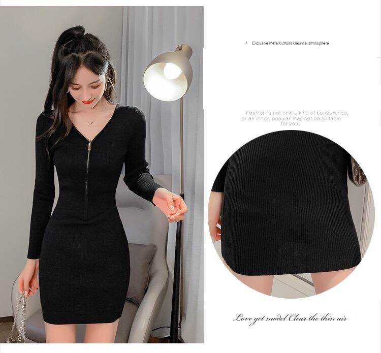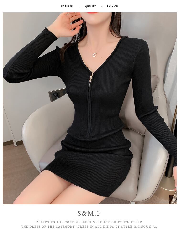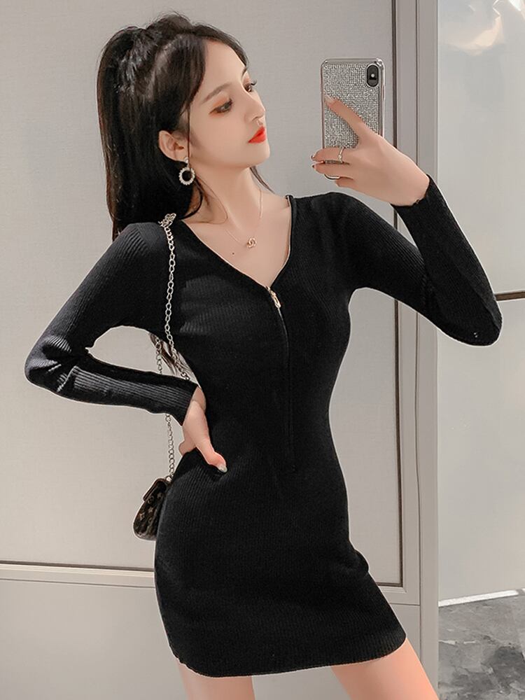 【送料無料】ニット ワンピース ミニ 黒 長袖 リブ タイト セクシー ショート丈 無地 カッコイイ セクシー ミニ ワンピ ドレス カジュアル レディース 小さいサイズ S M L 大きいサイズ XL おしゃれ 長袖 Vネック 春 秋 ブラック コーデ 細身 きれいめ モテコーデ デート クール かわいい いい女 スタイルアップ 細身 普段使い 大人 主役級 脚長 華やか インスタ映え 海外 トレンド 流行 大人気 高見え 10代 20代 30代 韓国系 安い プチプラ 存在感 db2906