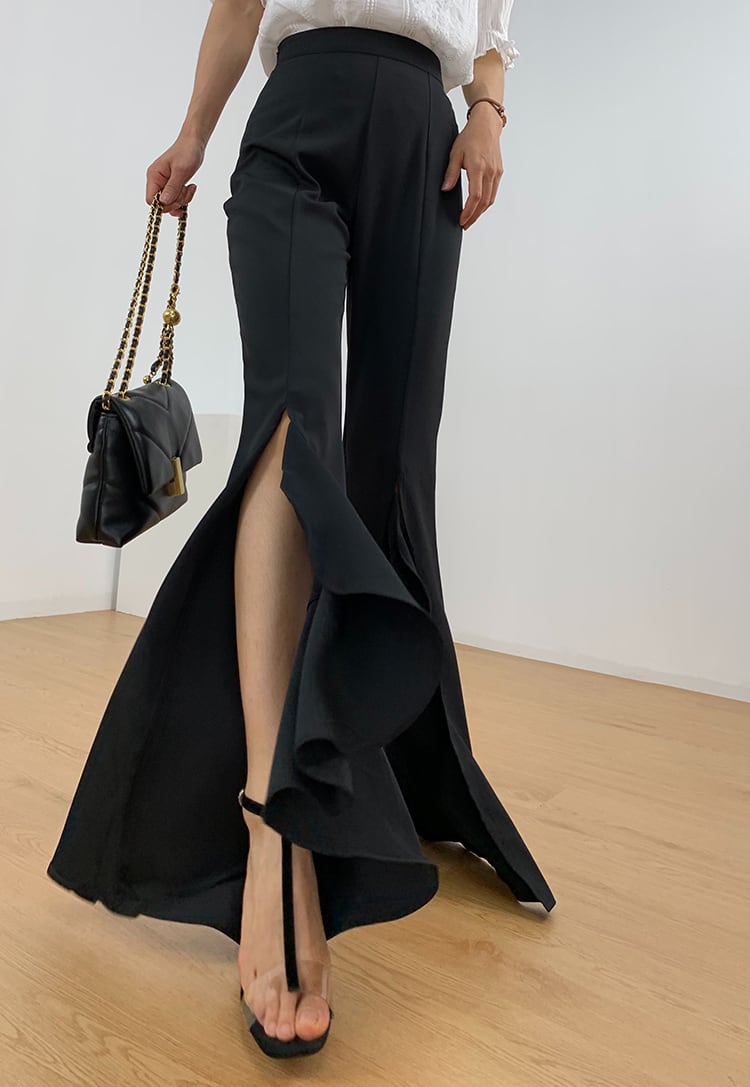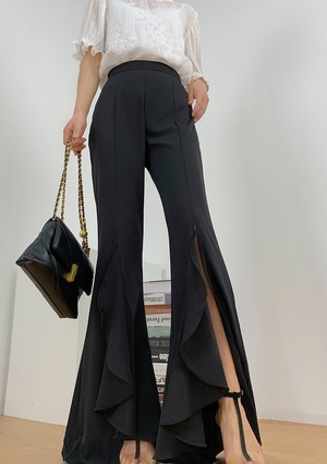 【送料無料】フレア パンツ ロング丈 黒 無地 かっこいい 大胆 スリット ハイウエスト カッコイイ クール 春 秋 ボトムス ズボン ブールカット レディース 小さいサイズ S M 大きいサイズ L XL 2XL ブラック コーデ フォーマル きれいめ パンツ 黒 美脚 脚長 オシャレ デート 女子会 存在感 こなれ感 抜け感 主役級 お姉さん 大人カワイイ インスタ映え 韓国ファッション 海外トレンド 大人気 高見え 流行 人気 10代 20代 30代 40代 プチプラ db2908