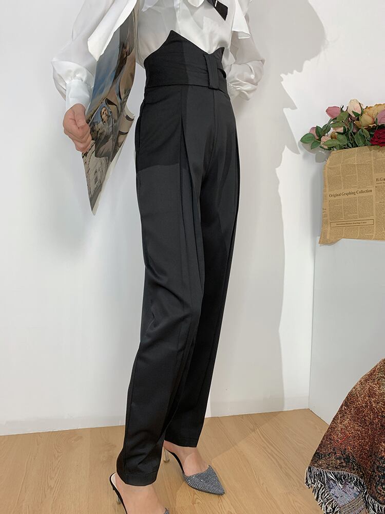 【送料無料】パンツ ロング丈 黒 無地 かっこいい きれいめ ビジネス パンツ ハイウエスト ボトムズ レディース ズボン スタイルアップ ラフ クール いい女 モード系 ブラックコーデ 春 秋 冬 小さいサイズ S M 大きいサイズ L XL 通勤 OK 美脚 脚長 オシャレ デート 存在感 こなれ感 抜け感 普段使い デイリー使い 休日 主役級 お姉さん 大人カワイイ インスタ映え 韓国ファッション 海外トレンド 大人気 高見え 流行 人気 10代 20代 30代 40代 プチプラ db2916