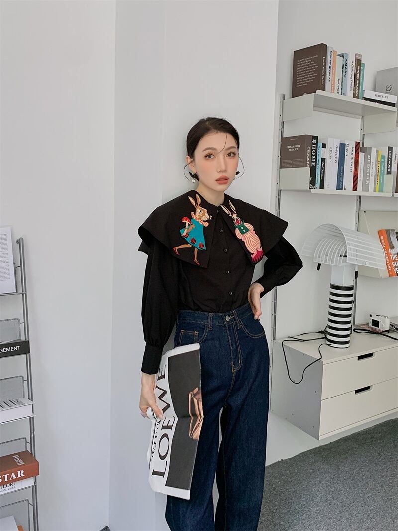 【送料無料】黒 シャツ ブラウス 長袖 リボン ビッグカラー ウサギ 兎 インパクト 個性的 トップス レディース 長袖 袖あり ブラックコーデ プリティ ガーリー ラブリー モテる スタイルアップ レトロ 可愛い 着痩せ スタイリッシュ 小さいサイズ XS S M 大きいサイズ L ブラック 黒 春 秋 冬 カワイイ おしゃれ デート お出かけ 存在感 こなれ感 抜け感 女子会 普段使い 休日 主役級 インスタ映え 韓国ファッション 海外トレンド 大人気 10代 20代 30代 40代 db2924