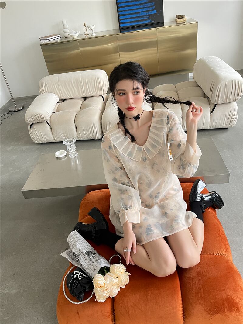 【送料無料】ワンピース ミニ 透け感 シースルー 上品 華やか ゆったり レトロ ショート丈 花柄 ワンピ ドレス 襟付き カワイイ キュート ガーリー レディース カジュアル パーティードレス 小さいサイズ S M L おしゃれ 半袖 春 秋 冬 スプリング オータム ウインター ベージュ きれいめ モテコーデ デート クール かわいい いい女 スタイルアップ 細身 普段使い 大人 主役級 脚長 華やか インスタ映え 海外 トレンド 流行 高見え 10代 20代 30代 韓国系 存在感 db2927