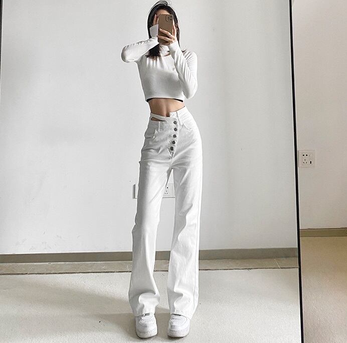 【送料無料】 白 パンツ ホワイト デニム ハイウエスト アシメ アシンメトリー ボタン 無地 春 夏 秋 冬 かっこいい ズボン ボトムス ジーパン ジーンズ ストレート ワイド クール 10代 20代 30代 レディース オフィス OL 学生 デート お出かけ 着回し 普段使い 重ね着 ファッション コーデ モテ 体系カバー 美脚 脚長 定番 プチプラ トレンド 流行 海外 S M L 大人可愛い きれいめ シンプル カジュアル 大人 おしゃれ お洒落 ラフ ボーイッシュ セクシー db2786