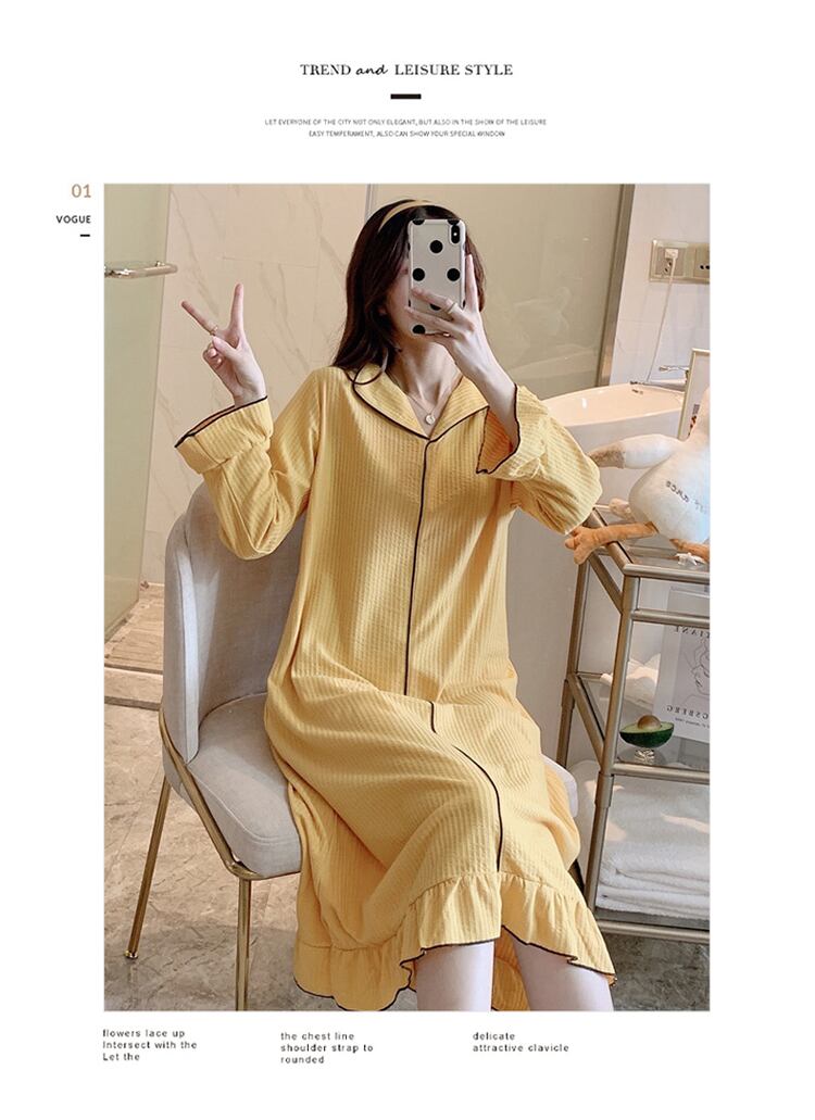 【送料無料】8色 ルームウェア ワンピース パジャマ ロング 襟付き Vネック 長袖 春 秋 かわいい ラブリー レディース 部屋着 ラフ シャツ ネグリジェ グレー ブラック ピンク ホワイト イエロー パステルピンク グリーン ブルー 灰色 黒 白 黄色 緑 青 おしゃれ かわいい ラブリー 大きいサイズ M L XL 2XL 可愛い インスタ映え デート お泊り お揃い 主役級 10代 20代 春 夏 トレンド 抜け感 オシャレ ゆったり らくちん ルーズ ゆる キュート プチプラ db2933