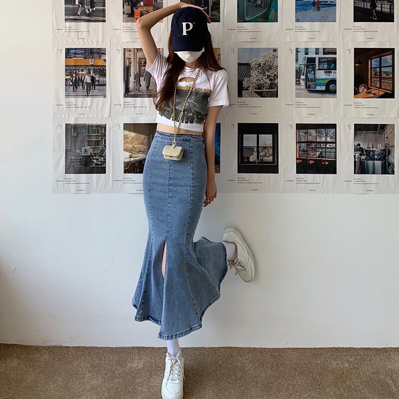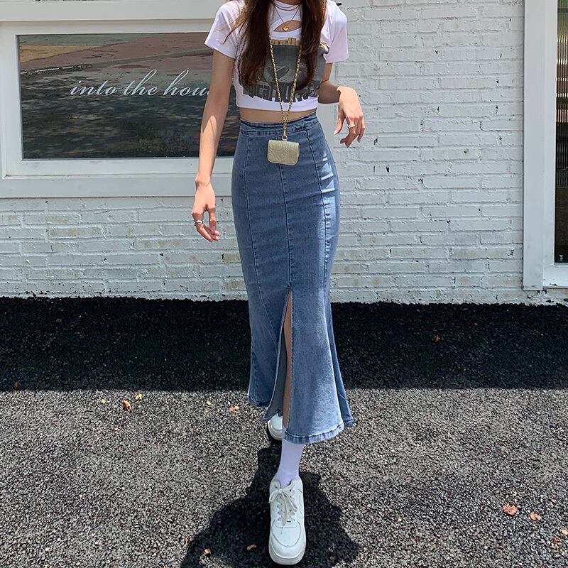 【送料無料】 2色 デニムスカート レディース ボトムス マーメード フィッシュテール ミモレ ミドル丈 ハイウエスト スリット 青 黒 ブルー ブラック 春 夏 秋 冬 スカート カジュアル 個性的 大きいサイズ S M L XL 大人 おしゃれ セクシー 可愛い かっこいい 大人女子 カジュアル お洒落 ストリート 大人カジュアル インスタ映え 古着 ヴィンテージライク シンプル ママ ママコーデ ベーシック 着回し コーデ デート 10代 20代 30代 韓国 普段使い モテ レトロ db2830