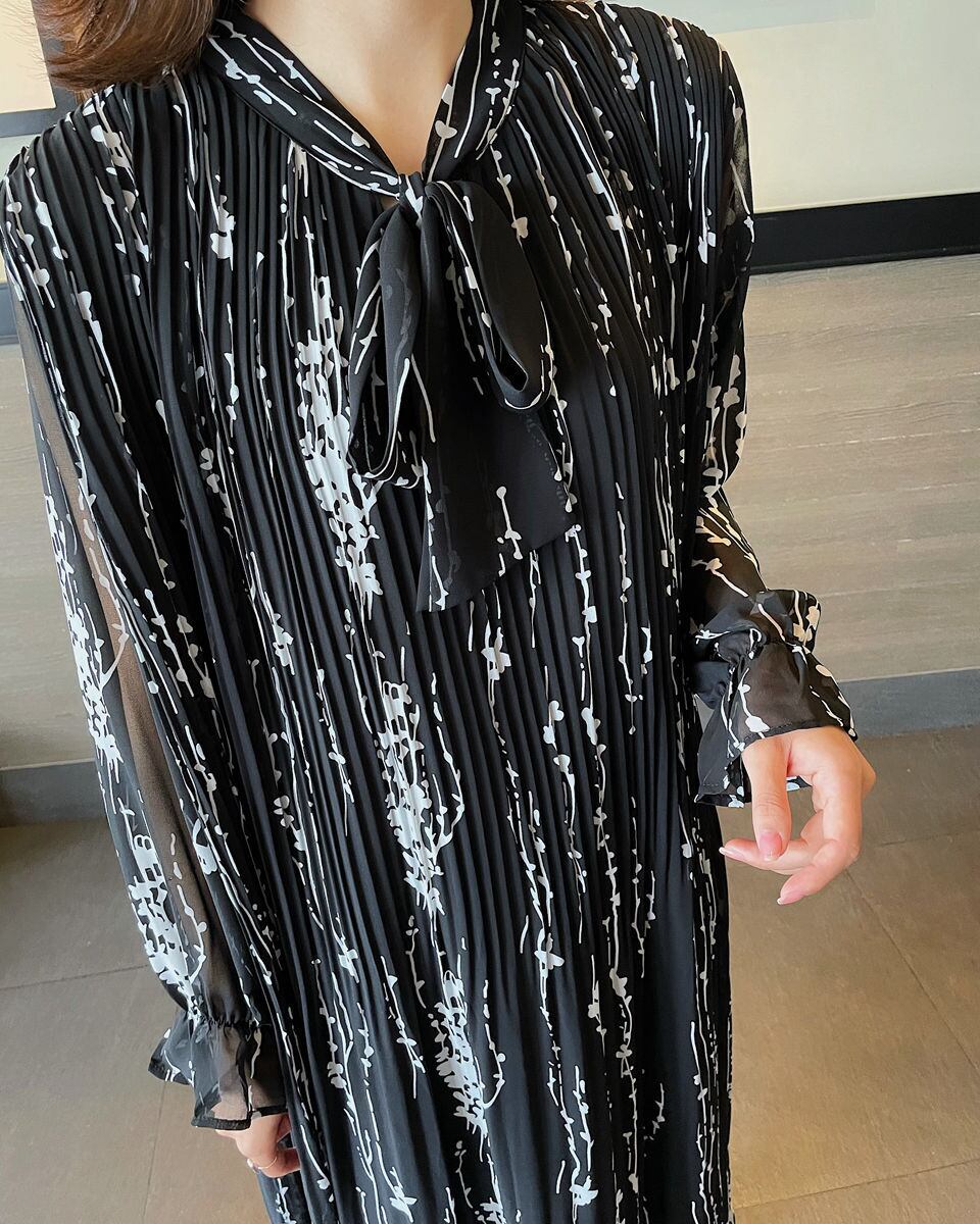 シックなモノトーンで大人可愛いシフォンワンピースです♪