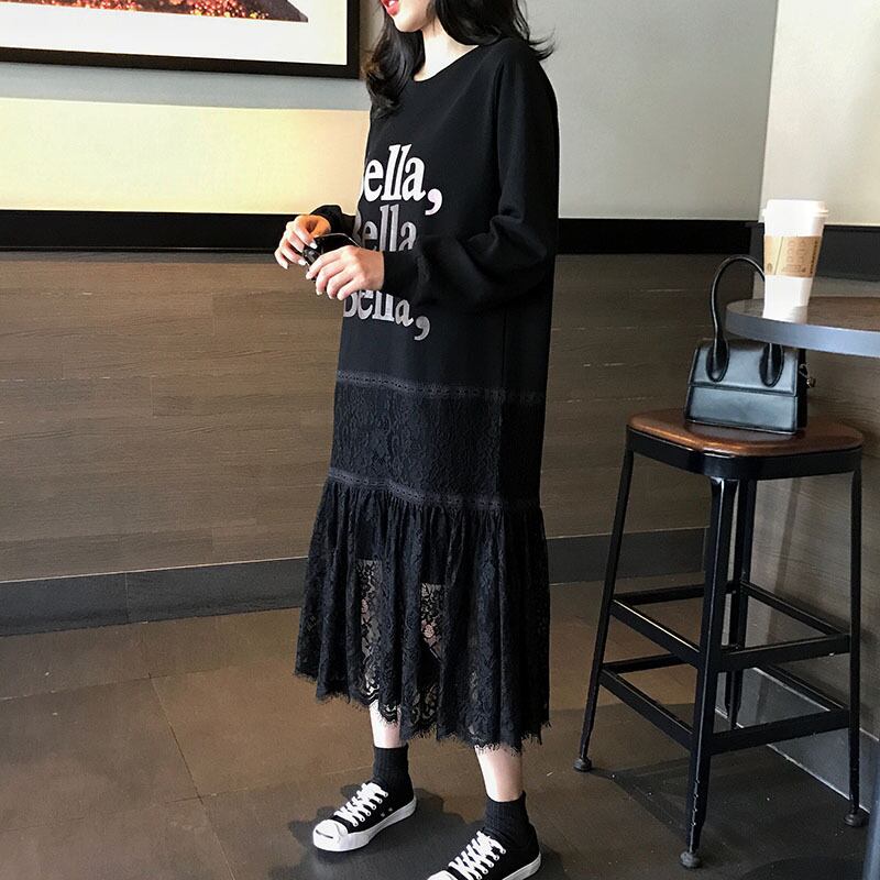 【送料無料】 黒 ワンピース レディース 切り替え プルオーバー レース ロゴ 長袖 襟なし ラウンドネック 個性的 カジュアル ワンピ ドレス 大人可愛い かっこいい 黒 ブラック レトロ 大人可愛い ラブリー おしゃれ カジュアル 大きいサイズ S M L XL 2XL 3XL こなれ感 インスタ映え 春 秋 冬 10代 20代 30代 通勤 学生 休日 お出かけ お揃い 双子 韓国 原宿 スタイル ファッション コーデ デート 大人カジュアル クール トレンド 主役級 存在感 db2843