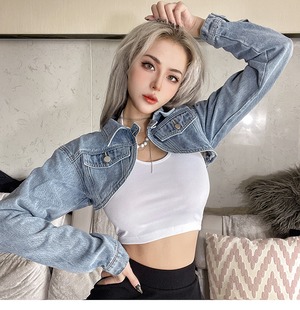【送料無料】 デニム ジャケット 超ミニ ベリーショート丈 長袖 Gジャン 襟付き ポロカラー ブルーデニム かわいい 大人可愛い シンプル カジュアル かっこいい ストリート 個性的 春 秋 アウター レディース セクシー 女の子 甘辛MIX クール 主役級 存在感 無地 春 夏 秋 10代 20代 30代 レディース OL 通勤 学生 デート お出かけ 着回し 普段使い 重ね着 モテ 新作 プチプラ トレンド 流行 インスタ映え 海外 S M L db2798