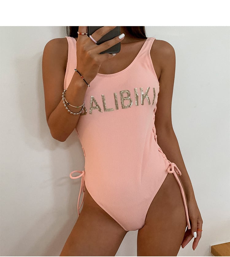 【送料無料】3色 ワンピース 水着 レディース 体型カバー モノキニ ハイレグ カジュアル 英文字 ロゴ シンプル 編み上げ リボン ニット風 スクール水着風 海外 水着 ワンピ モデル 写真 撮影 グラビア 衣装 ネイビー ピンク 黄色 イエロー 紺色 オールインワン ビーチ プール リゾート 10代 20代 30代 40代 可愛い キュート スポーツ 双子コーデ お揃い 脚長 美脚 スリム M L XL 大きいサイズ インスタ映え ナチュラル 安い 学生 レトロ 小胸 ママ 女性用 db2614