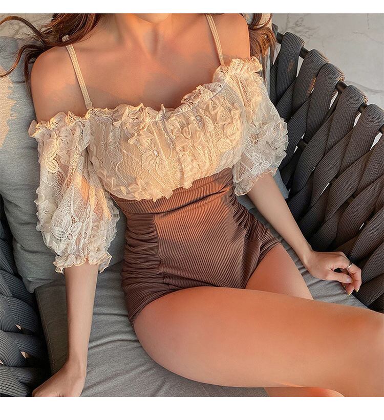 【送料無料】ワンピース 水着 レディース レース 袖あり ハイウエスト 体型カバー モノキニ レトロ ガーリー かわいい おしゃれ バイカラー ニット風 二の腕カバー 韓国風 水着 ワンピ モデル 写真 撮影 グラビア 衣装 バックシャン キャミソール ラブリー セクシー モテ お腹カバー 脚長 オールインワン 水着 女性用 女の子 スウィムウェア 温泉 プール 海水浴 10代 20代 30代 M L XL 大きいサイズ インスタ映え 色っぽ きれいめ フッション きれいめ 旅行 安い db2618