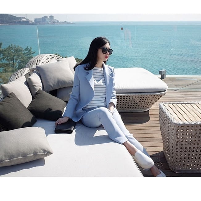 レトロで遊び心溢れるカラー展開のパンツスーツセットアップです。