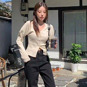 【送料無料】 4色 ニットソー カットソー レディース リブ 長袖 レトロ 黒 白 茶色 ベージュ クラシカル 上品 綺麗め Vネック ミニ丈 ヘソ出し チラ見せ セクシー タイト トップス 春 秋 ドロップショルダー ドルマンスリーブ ショート丈 クロップ丈 ボディコンシャス スリム シンプル カジュアル おしゃれ 大人可愛い こなれ感 ラフ 10代 20代 30代 40代 普段 デイリー 休日 お出かけ デート オフ リラックス モテ コーデ インスタ映え 韓国 韓国系 ファッション db3001