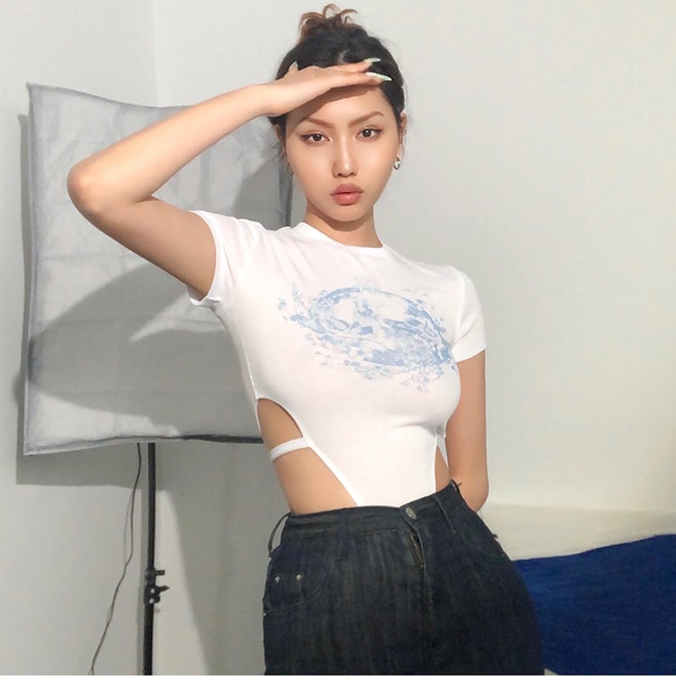 【送料無料】ボディスーツ トップス 海外 セレブ レディース ハイレグ 黒 白 半袖 Tシャツ風 ブラック ホワイト ストリート 無地 肌見せ セクシー カジュアル トレンド 流行 ファッション 人気 コーデ 春 夏 秋 タイト 細身 かっこいい クール おしゃれ ラフ コーデ 薄手 超ハイレグ スタイルアップ 個性的 ユニーク チラ見せ 肌見せ S M L 10代 20代 30代 40代 着回し こなれ感 抜け感 大人 アイテム ピッタリ スリム 美ライン 脚長 db2964