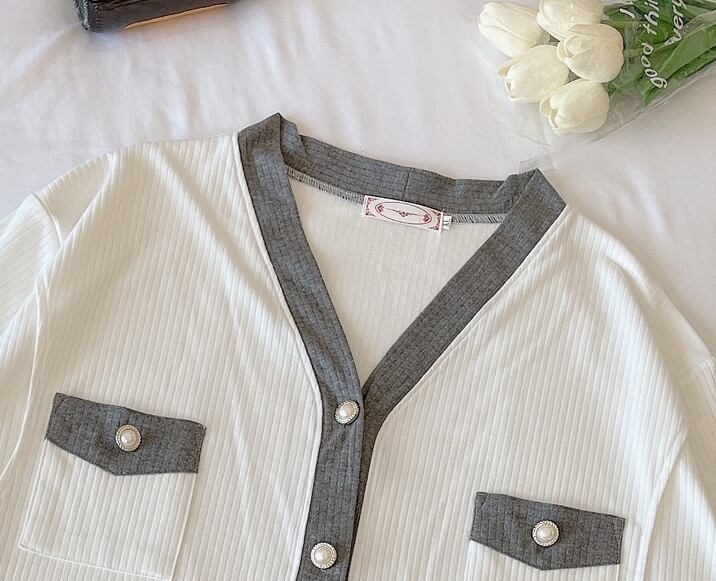 【送料無料】ルームウェア パジャマ レディース 上下セット マタニティ ママ 授乳口 パンツ パールボタン リブ 白 グレー 無地 バイカラー モノトーン 薄手 春 秋 部屋着 寝巻き ママ 女の子 トリム 長袖 ナイトウェア Vネック 前開き 大人可愛い おしゃれ レトロ ラフ キュート ガーリー 柄 10代 20代 30代 40代 OL 学生 女子会 お泊まり 旅行 お揃い 双子 楽ちん 暖かい 防寒 モテ 大きいサイズ ゆったり 韓国系 オルチャン db3029
